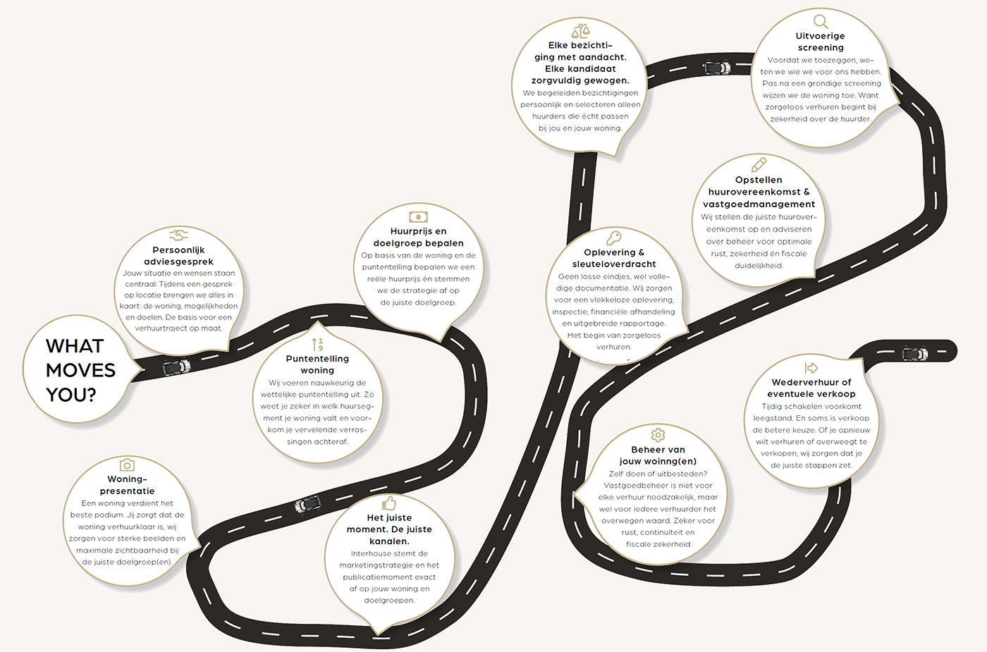 A route where nothing is overlooked. From the very first consideration to full property management: every step counts. The Interhouse roadmap gives you a clear view of the entire process, ensuring everything falls into place and renting truly becomes carefree. Naturally, your motivation for renting is always our starting point.